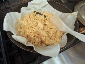 前回の続きです。 洗った雑穀入りお米の水に定量の水を入れて炊飯器にセットして普通に炊きます。 蓋を開けるとカニ穴が空いて、ふっくらとご飯が炊けています。 軽い長粒米バスマティ・ライスが上に浮いて炊き上がっています。キビの […]