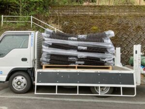 4月半ば、待っていた鹿猪除け金属柵「パタサク」がやって来ました。 クレーン付きの6トン車1台の予定ったのですが、アクセスと積み下ろしの関係で3トン車2台に変更。 1台には、折り畳まれた金属フェンスが170メートル分、もう […]