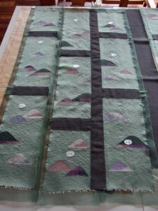 糞掃衣完成6 袈裟・縫い合わせ縦方向 の続きです。 縦方向にユニットを3枚縫い合わせ、縫い目と縫い代を隠す様に「葉」と呼ばれる細長い布を縫い付け、縦長の布「条」が出来ました。次はこの「条」を緯方向に縫い合わせて行きます。 […]