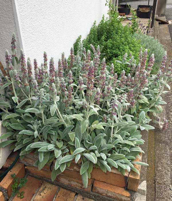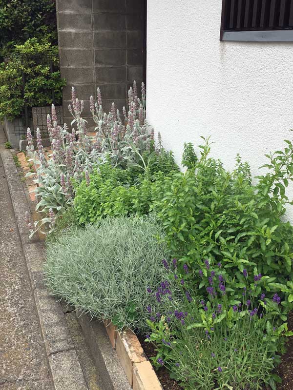 横浜の家の玄関わきのハーブが大きく育って迎えてくれました