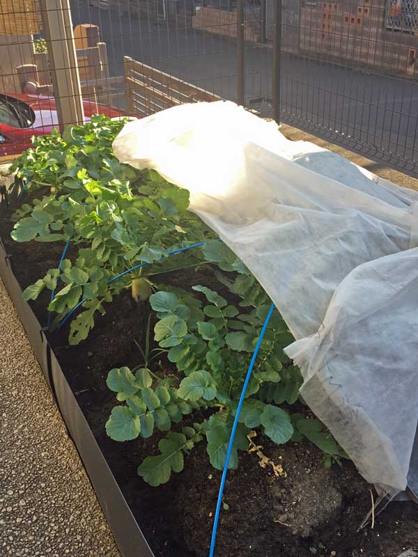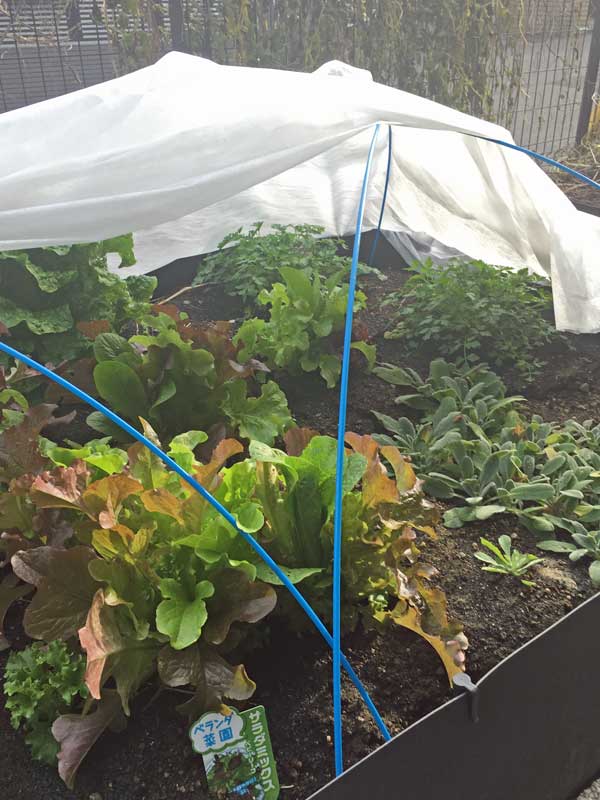 小さな苗を寒風から守るため不織布で覆って、師走を越し、新しい年の1月も後1週間の