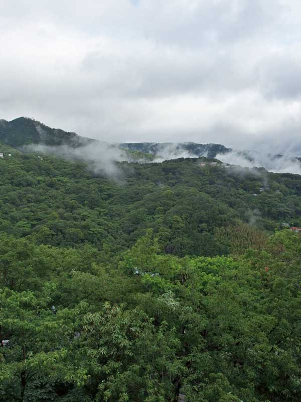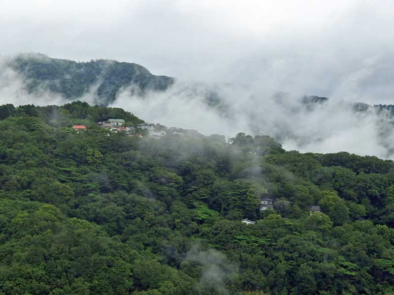 昨夜からの雨が止み、朝起きたら霧が雲になって登っています。
