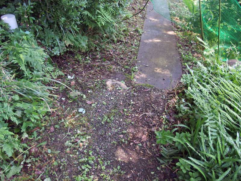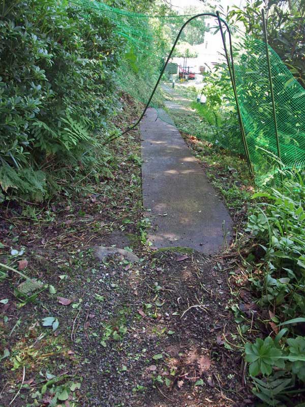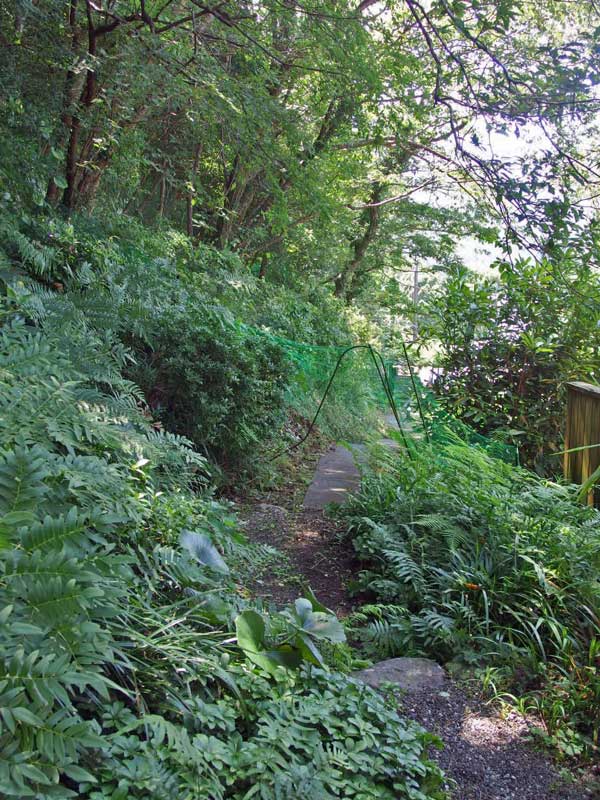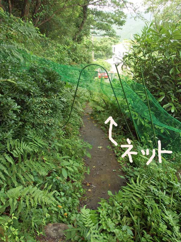 玄関から道に面した出入り口までの山道は、連日の雨でグングン育った草やツタで覆われ、何処までが道なのか何処からが崖なのか、分からない状態です。。