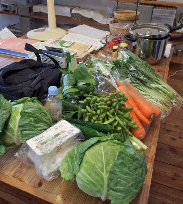 この日も台所のテーブルまで運んで下さいました。キャベツの隣はお豆腐、もし扱っていらっしゃるならとお願いしたのに、近くのスーパーでわざわざ買って持って来て下さったのです。