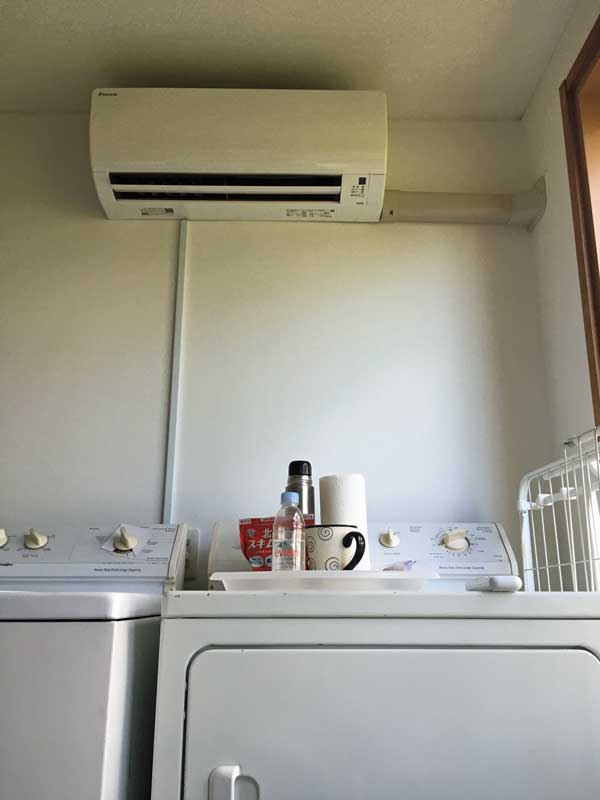 一番涼しい部屋、唯一エアコンがある部屋、それは洗濯室でです。