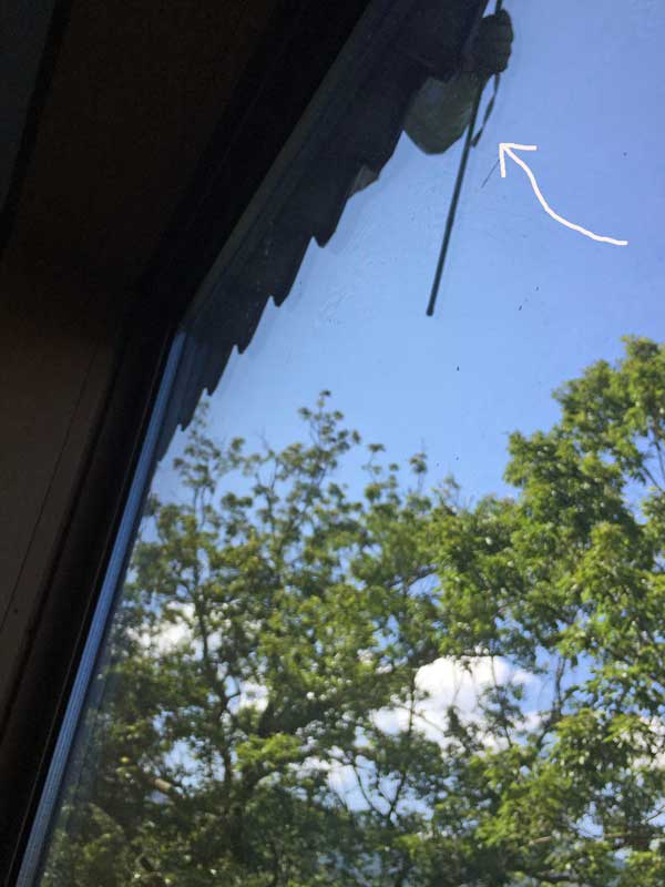 先週、洗濯室の簡易ベッドに寝転んで窓から空を見上げていたら、窓の上にある上階のテラスの床下部分にスズメバチが頻繁に出入りしているのに気付きました。 大変です! 私はスズメバチに2度、足長バチに3度刺されています。今度刺されたらひどい事になるし、骨折しているので機敏に逃げられません。