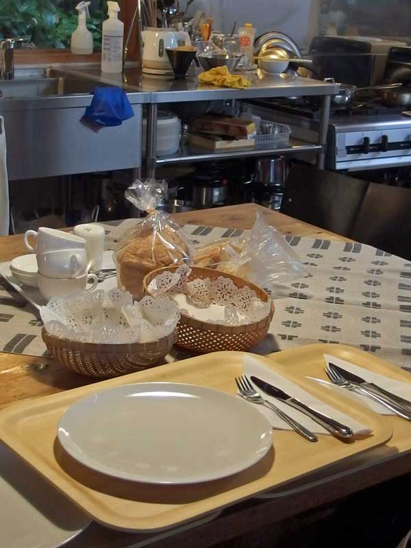 一昨日、日曜日の朝6時過ぎ。外は霧で未だ薄暗いキッチン、私は朝食ビュフェの準備を始めました。今日は旧友が横浜を5時過ぎに出発して、草刈りと買い物のボランティアに伊東まで来て下さるからです。
