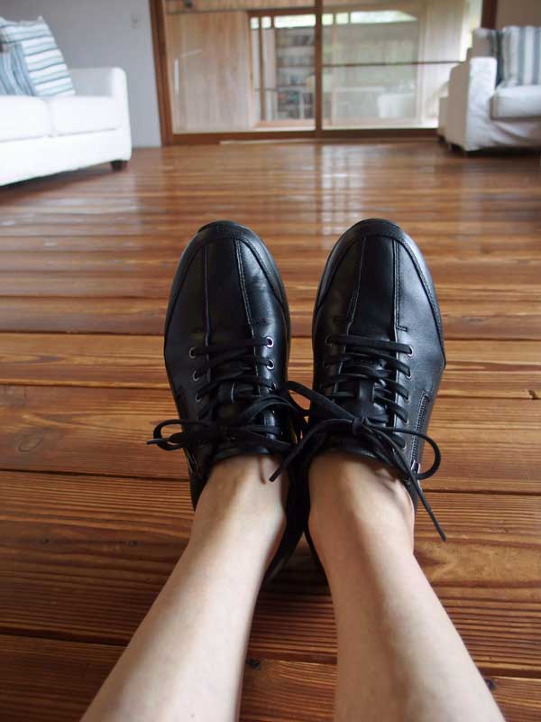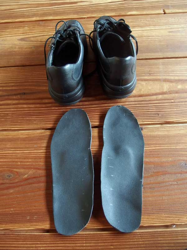この写真を見て気付いたのですが、未だ右足首が少し腫れているのと右足全体が黒っぽくて太いです。この靴には不思議なインソールを入れてあって、なるべく長時間インソールを使うようにとの事なので、朝から晩まで1日12時間近く靴を履いているのです。