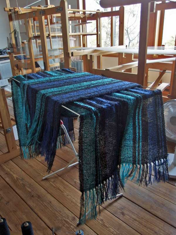 織って、機から外して、切っただけの、ショールが2枚
