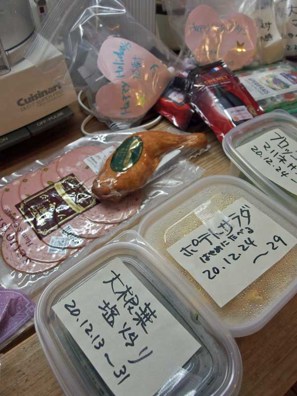 私は15年前に突然肉魚が食べられなくなり、料理するのも嫌になってしまいました。それでMさんのクリスマスのメインは市販の鶏腿ロースト1本、昔はクリスマスにはターキーのローストを焼いていたのにです。