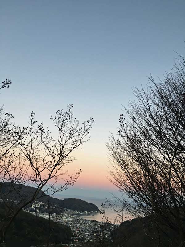 夕方の散歩の途中、私の住む伊豆の山から海を臨む