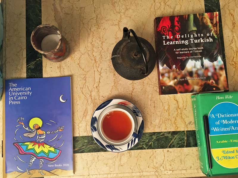 左下の本は、大学でアラビア語を教えているLさんの最新の著書。エジプト口語の仕組みをイラストと共に解説した本だそうです。