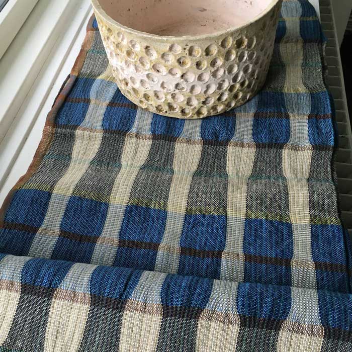 ↑ 特殊な筬(リード)を使って織る”よろけ縞”の作品です。