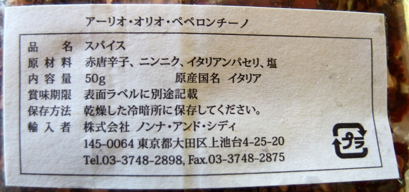 この時使ったイタリアンハーブミックスは、4月7日の「ピンチはパスタ」にも使った アーリオ・オーリオ・ペペロンチーノ ですが、パラパラっと振りかけるだけで味付けが出来てしまうので、忙しい時に便利です。 ただ、赤唐辛子がかなりきついので、私はフレッシュパセリをたっぷりプラスして使う事が多いです。