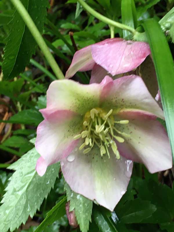 こちらは薄いピンクに緑がかった白の愛らしいクリスマスローズ