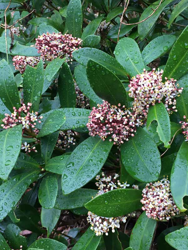 裏庭のミヤマシキミ(紅花種)の花が、気が付けば終わりかけていました。