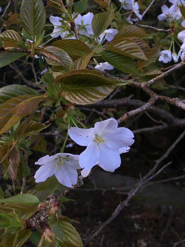 そして杖なしで散歩も出来るようになりました。桜を見たくて暗くなる前に散歩に出て、空を見上げると・・・