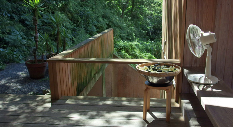 7月22日の巨大ズッキーニでお話しましたように、ズッキーニは陰性な野菜です。 でも陽性の塩を振って置くことで中庸に近づき、さらにこうして陽性の日に干すことでより中庸に近づきます。 暑い季節は体を冷やす食べ物をつい食べ過ぎてしまいますが、こんな風な知恵を取り入れて、中庸でバランスのよい食事と、体づくりを心がけたいと思います。