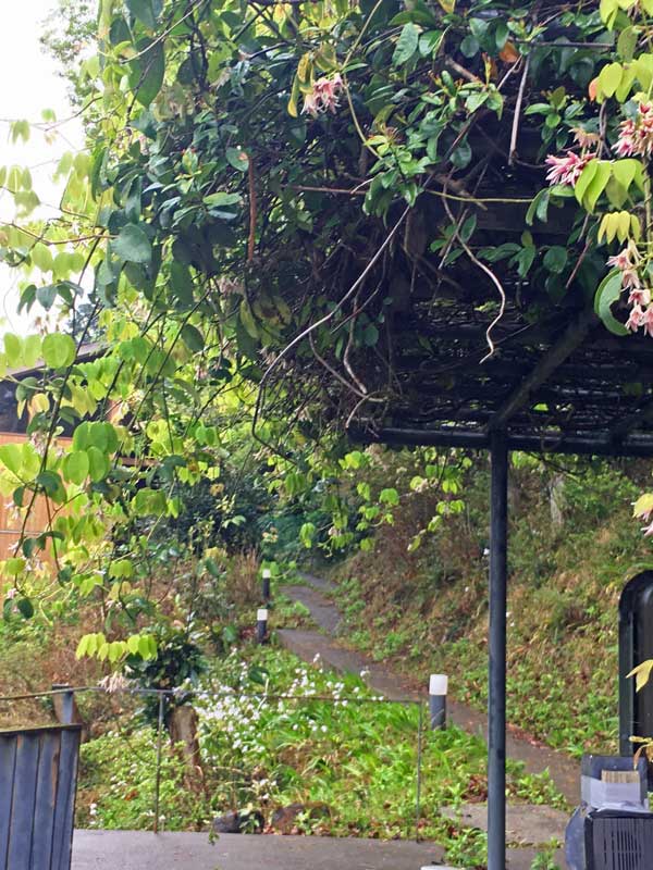 その棚に、地元の植木屋さんが山で捜して移植してくれた「ムベ」が這わせてあります。