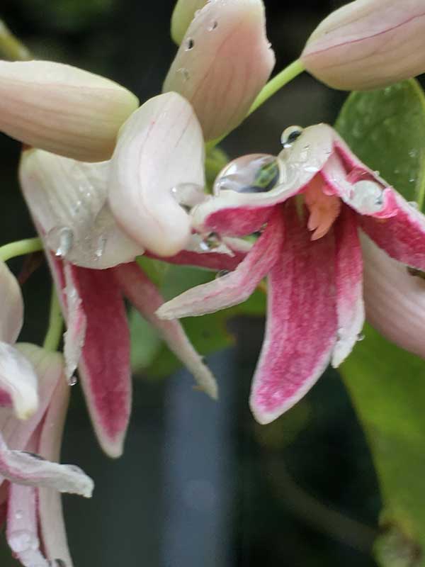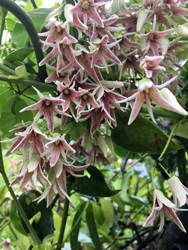 花が終わると小さな実がつき、秋に鶏卵くらいの紫色の実になります。葉も花も実も美しく日陰にも耐えるので、山の北斜面にある我が家の入り口で20年以上元気に育っていてくれます。