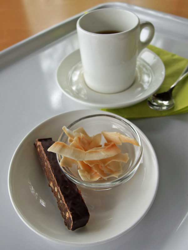 スイーツは市販品の、タイのロースト・ココナッツと、ポーランドのデーツ入ったチョコバー・オレンジ風味。どちらも久し振りに探検ショッピングに行った”業務スーパー”で見つけました。