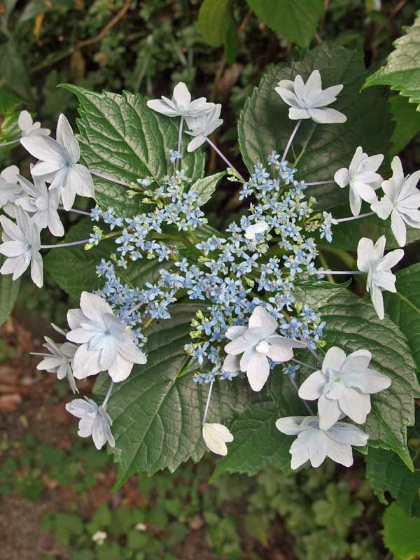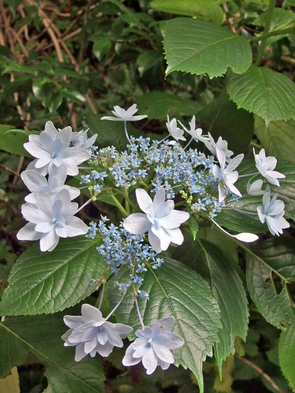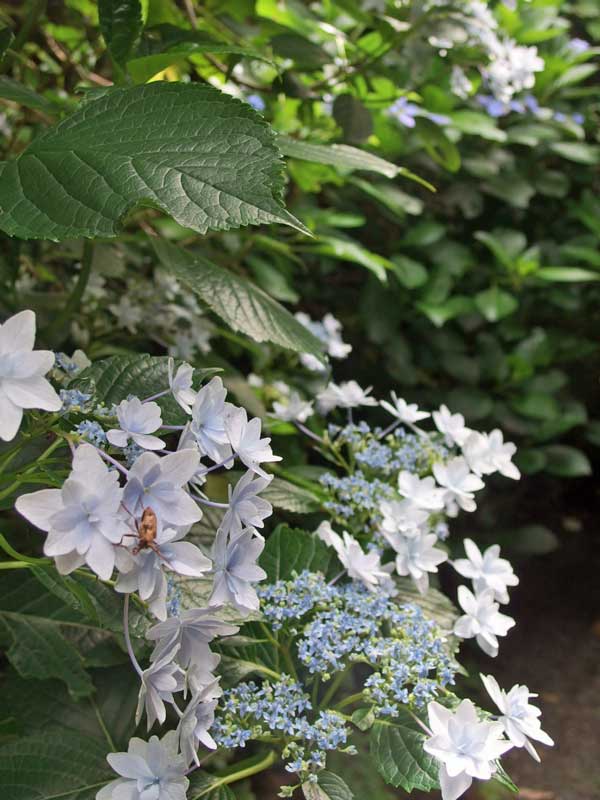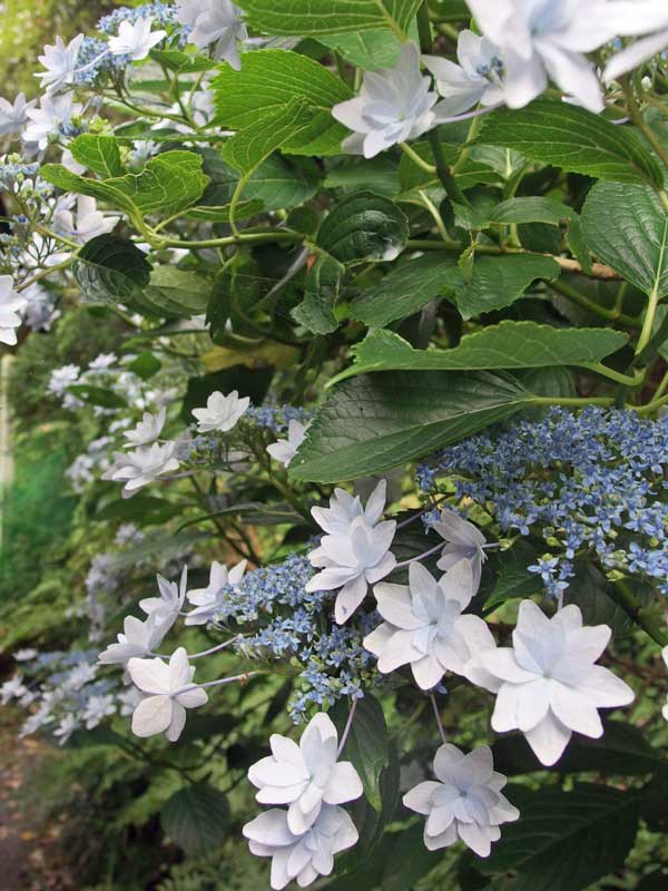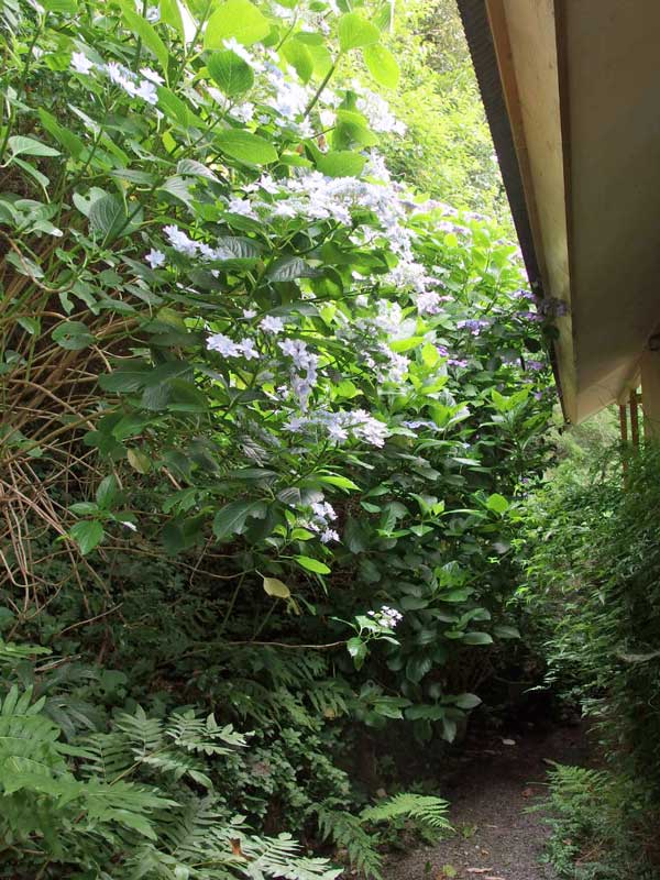 家の山側に植えた紫陽花は屋根の高さを越えて茂り、通路をふさぎ始めました。