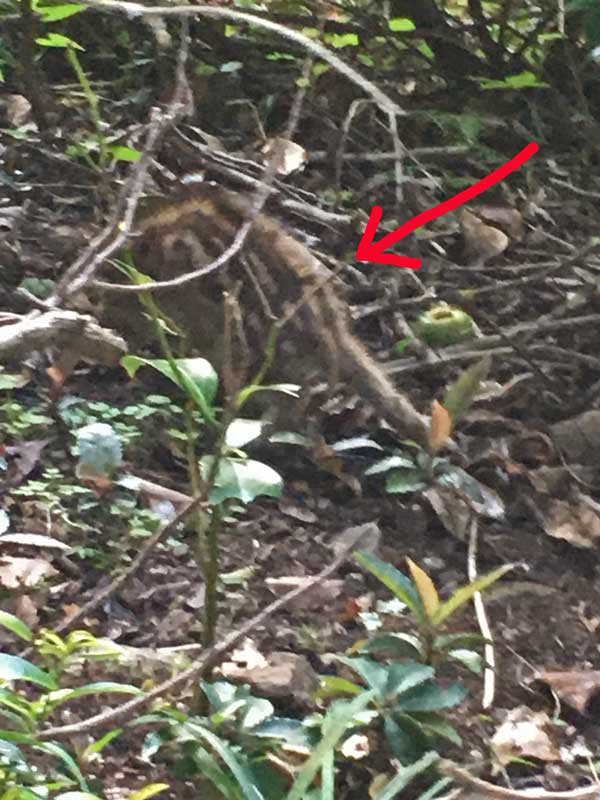 その日の夕方、散歩の途中、今度は我が家から少し下った場所の側溝からうり坊の鳴き声。見るとまた側溝を走っているではないですか。弱っている様子もなく元気溌剌、側溝の落ち葉の下のミミズを食べているのかもしれません。