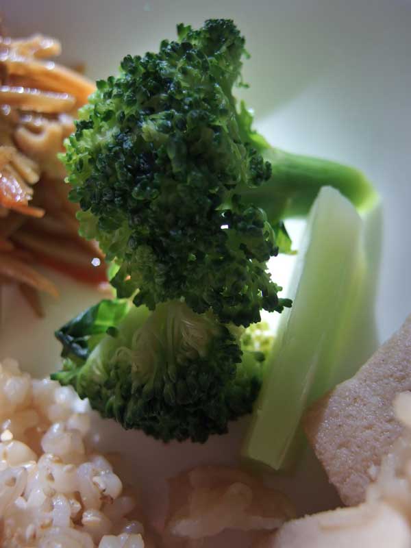 玄米ご飯にすり胡麻、黒豆昆布、キンピラ牛蒡、ブロッコリー塩ゆで、切り干し大根と高野豆腐煮