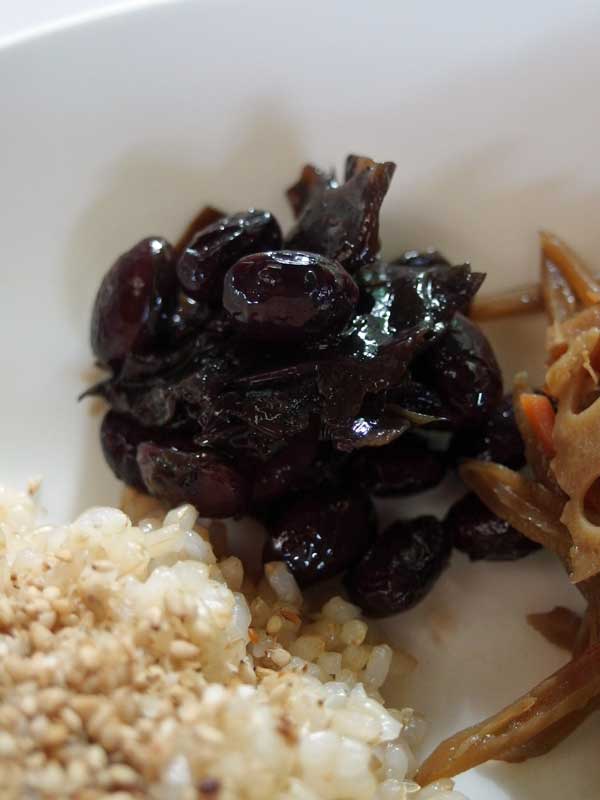 お粥だけ作って、後は冷凍保存してあったオカズだけ食べていた私が最初に作ったのが、この黒豆昆布でした。
