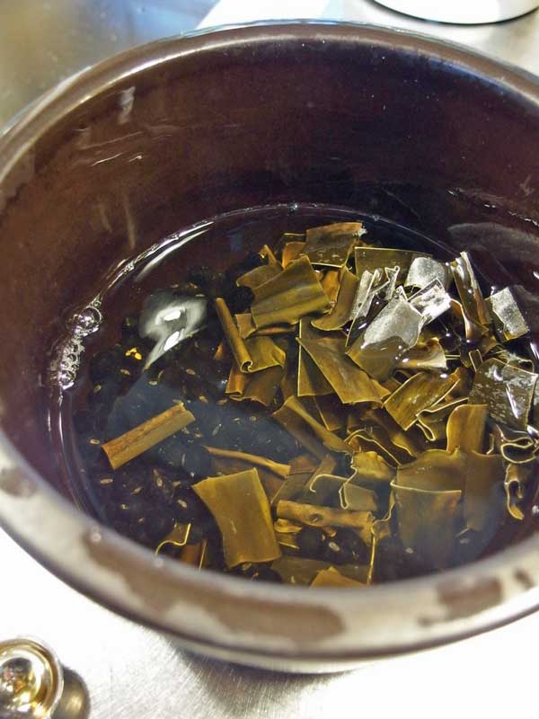 鍋を替えて弱火にかけ、洗濯をしようとちょっと台所を離れたら、煮詰めすぎてしまいました! 昆布が溶けてなべ底に張り付き焦げる寸前でした。