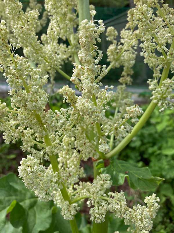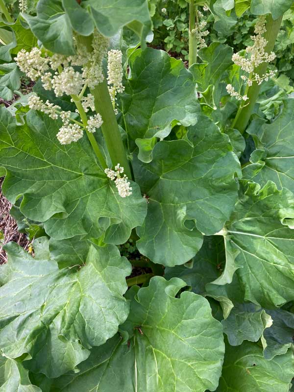 帰宅してルバーブの花について調べたら、「花穂を成長させると茎や葉が大きくならないので、小さいうちに切ること」とありました。今日は大雨で畑に行けませんが、雨が止んだら花穂を切りに行かなくてはです。