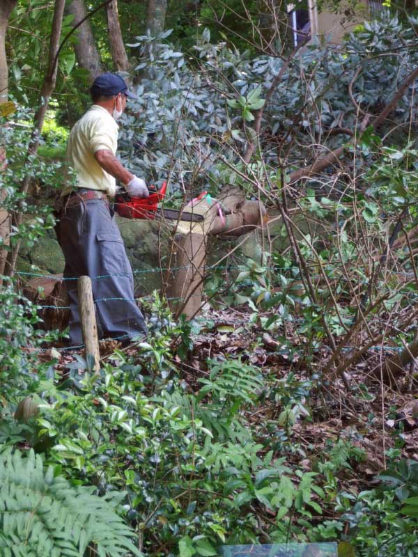 今月半ばから3日間かけて、仕事場の周りの木の伐採が行われました。立っているのも大変な急勾配の敷地なので、雨だったり地面が濡れていると滑るので、お天気と睨めっこしながらの日程でした。