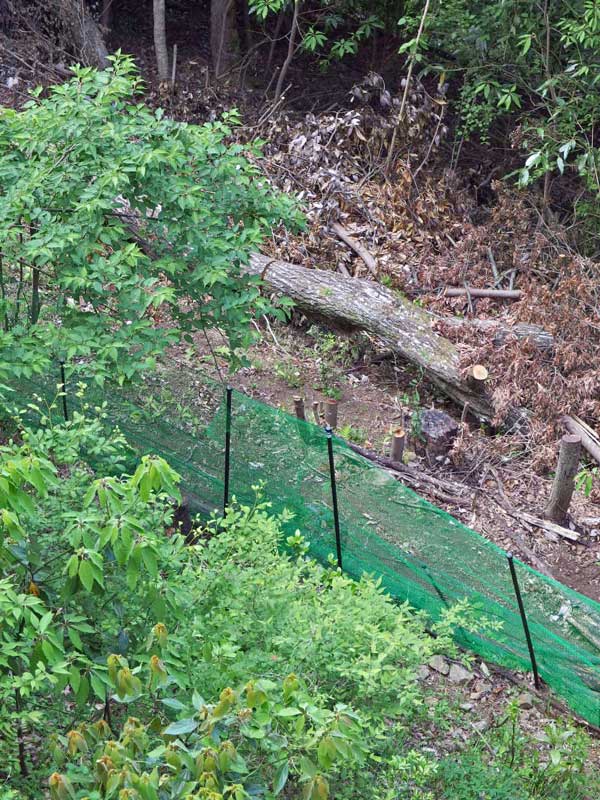 少しずつ3日間かけての作業でした。これで一先ず安心です。でもネットは破られたり劣化するのでテンポラリーな対策、将来的にはネットに沿って鹿の食べないシキミの木を植えて、生垣のようにしようかと思案中です。
