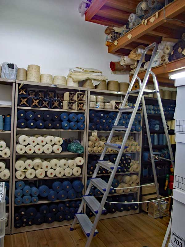 織物のための糸の在庫が一目瞭然で、必要な材料が必要な時に直ぐ取り出せるように、立体的に保管する倉庫を作ったのですが・・・ 年月が過ぎるうちに、段ボールに入れた糸、それに仕事とは関係ない物の箱が床を占領した状態になっていました。それが片付きました。