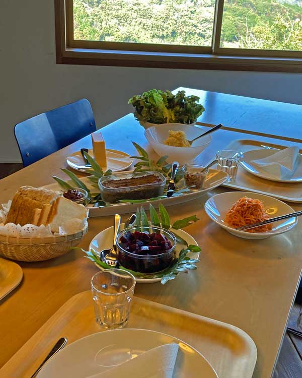 私自身がベジタリアンで先生は小麦アレルギー、そして皆少食。献立の巾は狭いですが少しづつユックリ楽しくのメニューにしました。