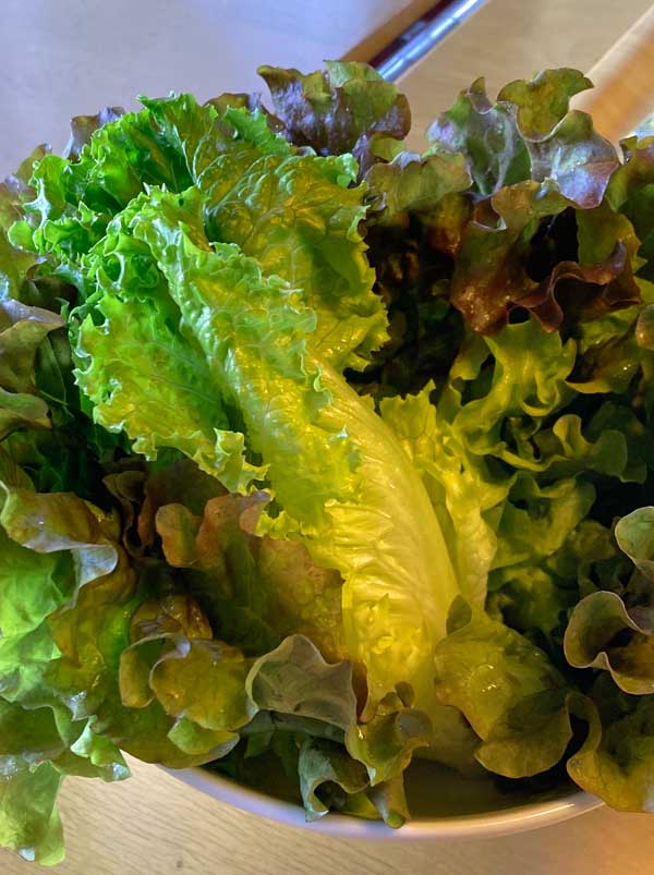 パテやチーズやサラダを乗せたパンを、更にこのサラダ菜で包んで頬張ります。味もテクスチャーも最高!ワインがあったらもっと良いのですが、この日は食事の後レッスンなので・・・