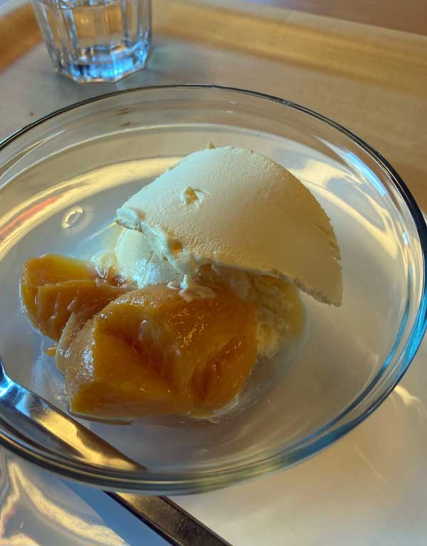 バニラアイスクリームに冷凍庫に発見した”桃のシロップ煮”を添えました。