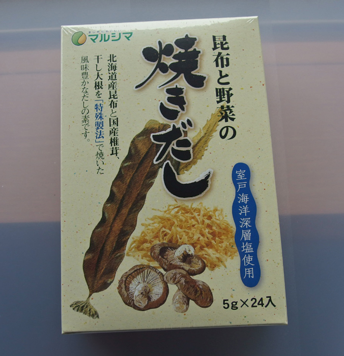 ここで使った焼きだしは、私のお気に入りのダシの素です。