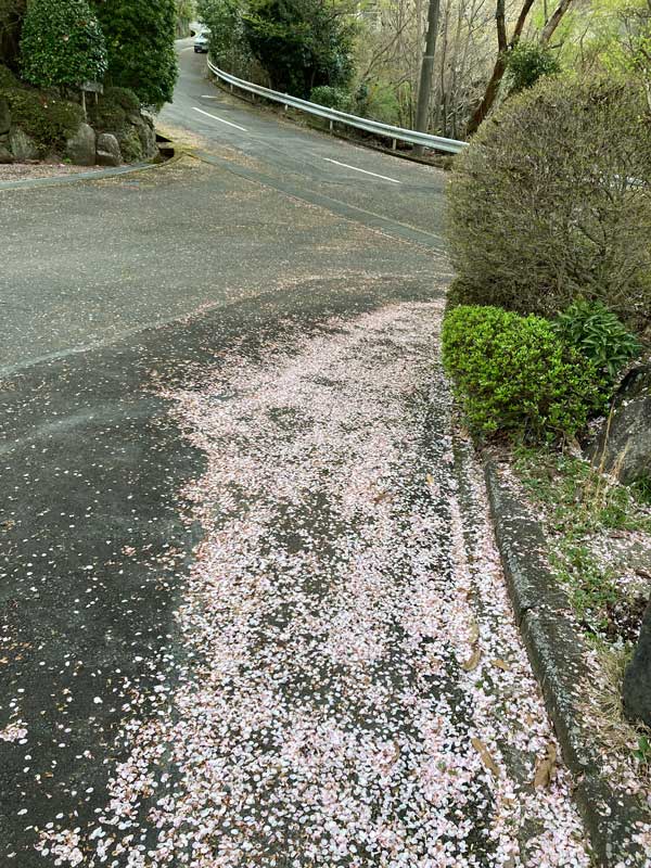我が家の周りの道は花びらが一杯! 花吹雪の中の毎夕の散歩が本当に楽みな今日この頃です。