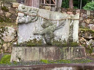 ホッとして水無神社の鳥居をくぐって駐車場に向かう時、お友達の一人が指さしたのがこの狛犬。
