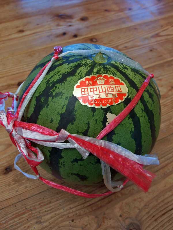 この地域で美味しいと評判の”田中山西瓜”です。実は一度この西瓜を買いに、亀石峠を越えた大仁にある「まごころ市場」に朝一番に行ったのですが、9時の開店時間には既に売り切れだったのです。
