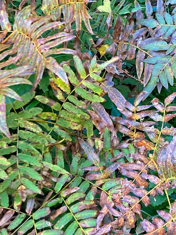 勝手口の外のゼンマイは秋の色に染まり始め・・・