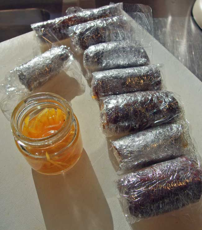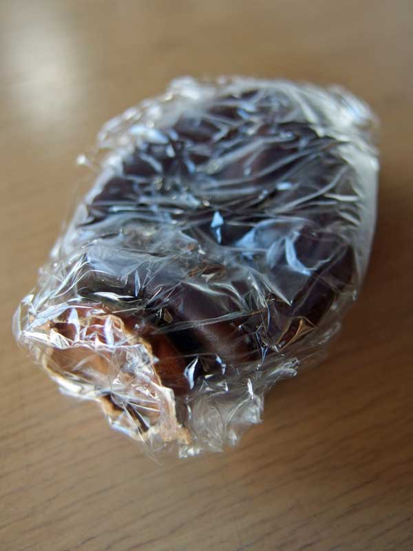 それをラップの上に置き、ブランデーを少しふり、しっかり巻きます。