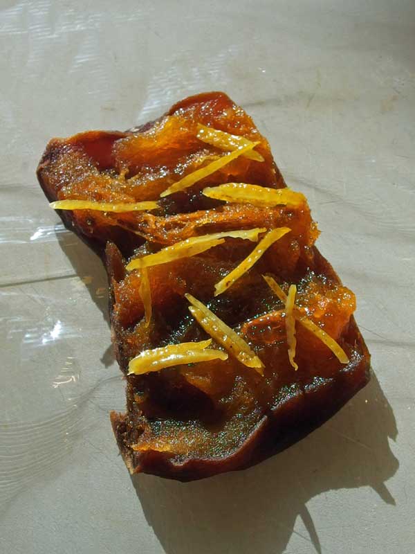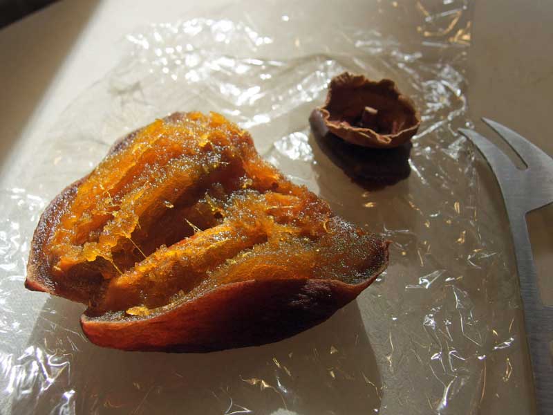 本来は”巻きす”の上に開いた干し柿を沢山並べ、太巻き寿司のように巻き、切って食べるようです。