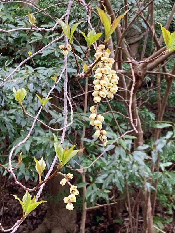 散歩道を見上げるとキブシの花が