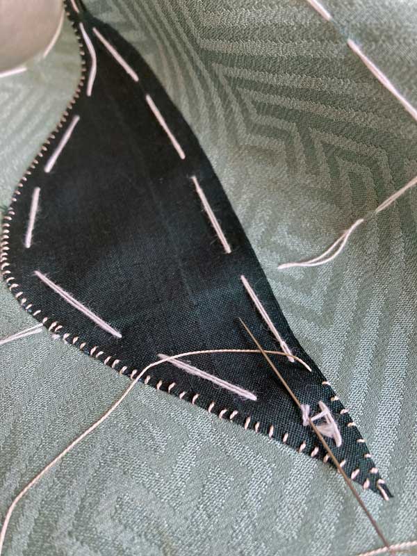 山型布の位置がずれないように、また周りが解れないように、周囲をくけます。