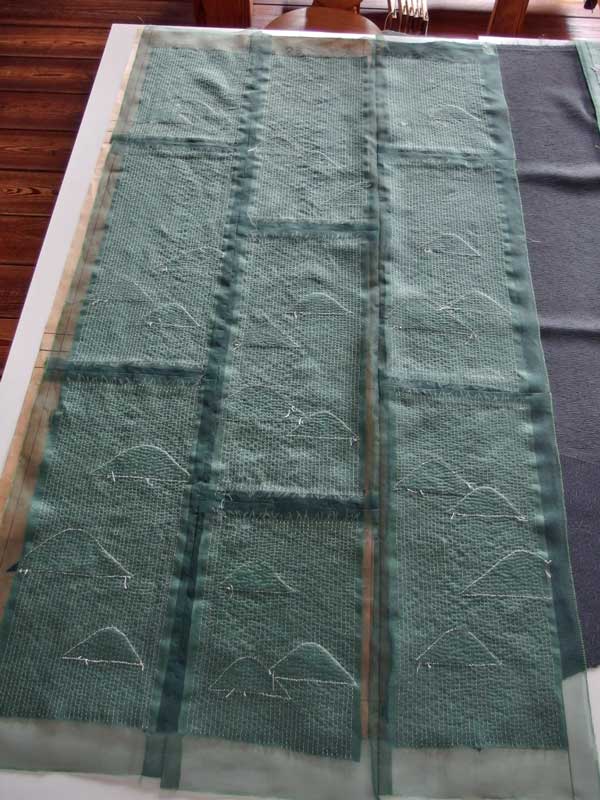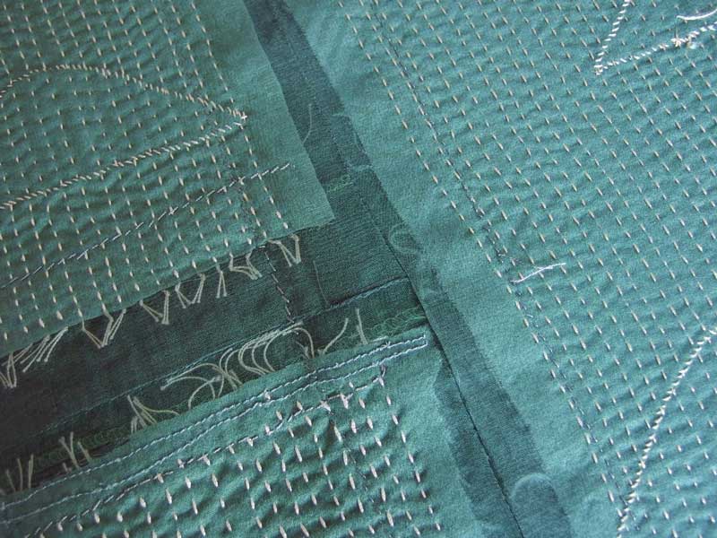 芯地のシルクオーガンジーが薄いので、その向こうの刺し子縫いされた表地の裏側が良く見えます。