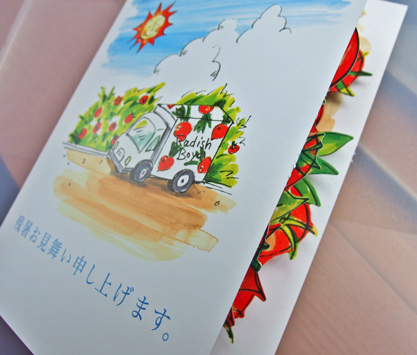 長年会員の安心食材の宅配会社から、残暑お見舞いのカードが届きました。