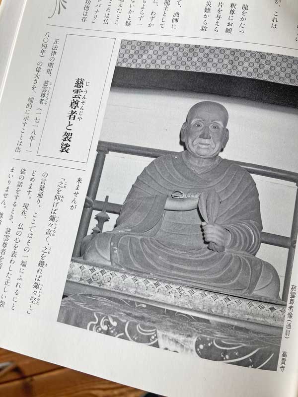 「正法律」の開祖”慈雲尊者”は、袈裟の原点についても研究し「方服図儀」という本を著されました。そして「千衣裁製」と言う、原点に戻った正しい袈裟を一千領制作の発願をし、それが尊者の遷化の翌年に完了したのだそうです。
