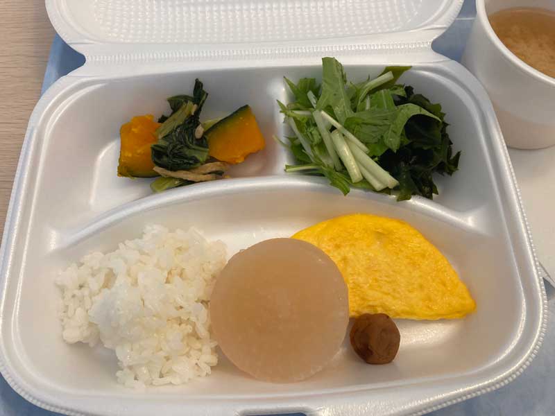 いつもは朝食抜きの私ですが、手術日も翌朝も飲み薬があるので、軽めの朝食をいただきました。ホテルの朝食ビュフェは野菜料理が豊富、それに持ち帰り容器に入れ部屋で食べる事も出来るのが有難かったです。